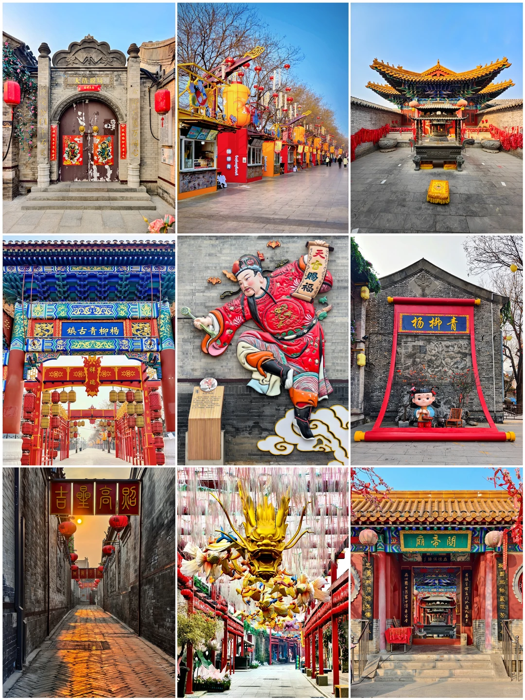 - 下午|我们到达『杨柳青古镇』,邂逅杨柳青古镇,遇见千年烟火,一踏入古镇,那古色古香的牌楼就像一道时光之门, 瞬间把我拉回了明清时期。街道两旁的建筑青砖灰瓦,磨砖对缝,精致的砖雕和石雕随处可见,每一处细节都诉说着往昔的故事。漫步其中,仿佛能听到当年商贾的叫卖声,感受到运河漕运带来的繁华与喧嚣。杨柳青古镇,可不止是建筑有看头,这里的民俗文化才是真正的宝藏,逛累了,就去街头巷尾寻觅美食。酥脆香甜的酥糖、热气腾腾的茶汤、甜而不腻的皮糖,每一口都是满满的儿时回忆。还有那脆甜可口的沙窝萝卜,咬上一口,汁水四溢,瞬间驱散了旅途的疲惫。