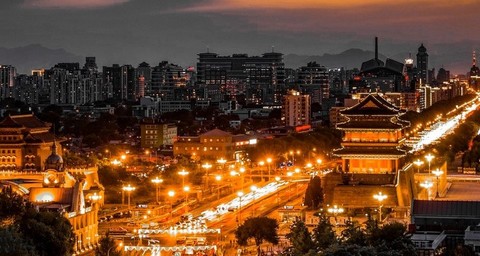 我们沿着中轴线继续前行至鼓楼。到了晚上,夜色中的钟鼓楼灯光亮起,显得更加古色古香,美轮美奂。