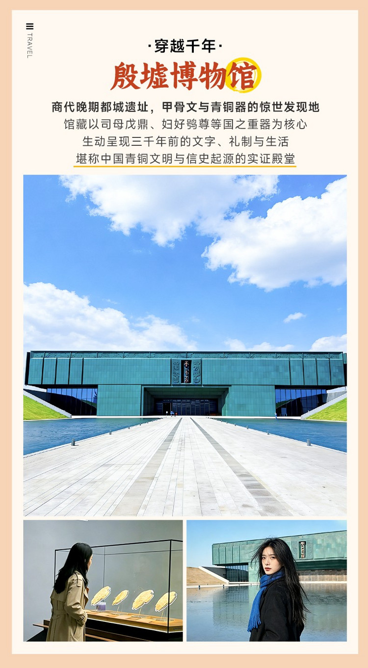 ·【殷墟博物馆】国家考古遗址公园的核心工程,是一座全面展示商朝文明的国家重点专题博物馆。