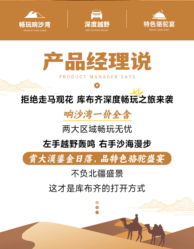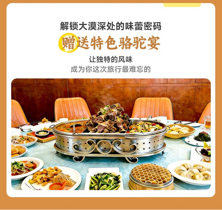 3、用餐:含3个酒店早餐,1个晚餐骆驼宴;