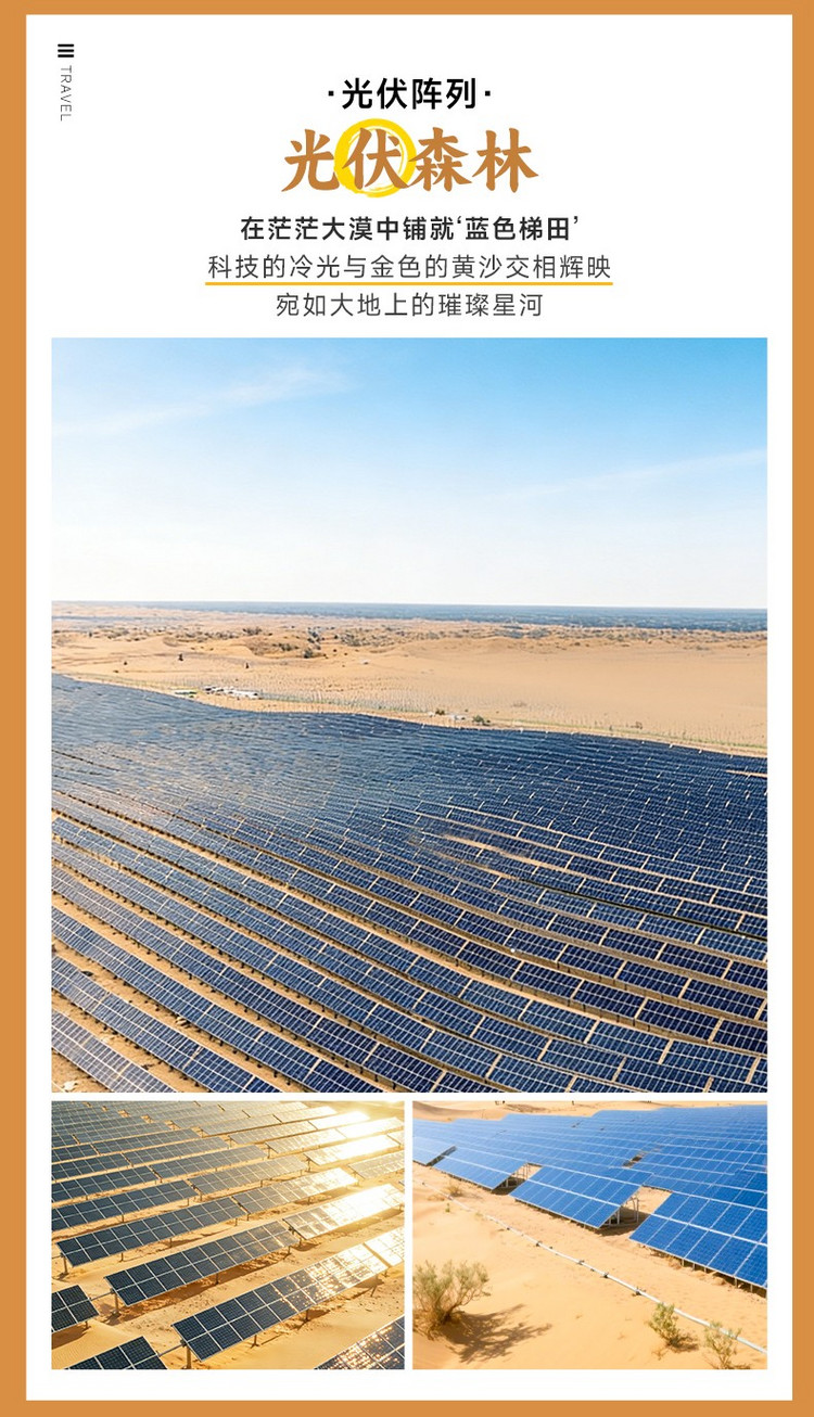 ·【光伏森林】07沙漠公路起点是达拉特光伏领跑基地,这片 "蓝色海洋" 与金黄沙漠交相辉映,展现人类智慧与自然和谐共处的奇迹,登山观景台,可俯瞰整片光伏森林。