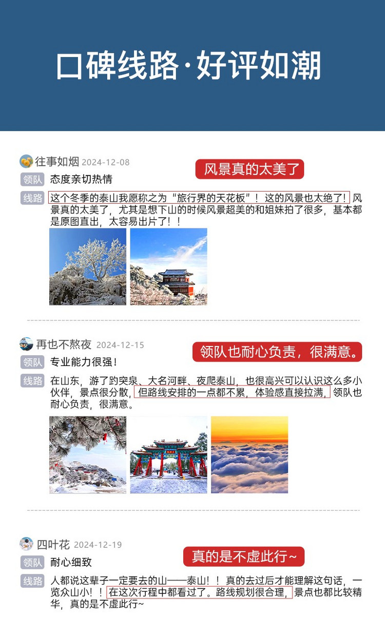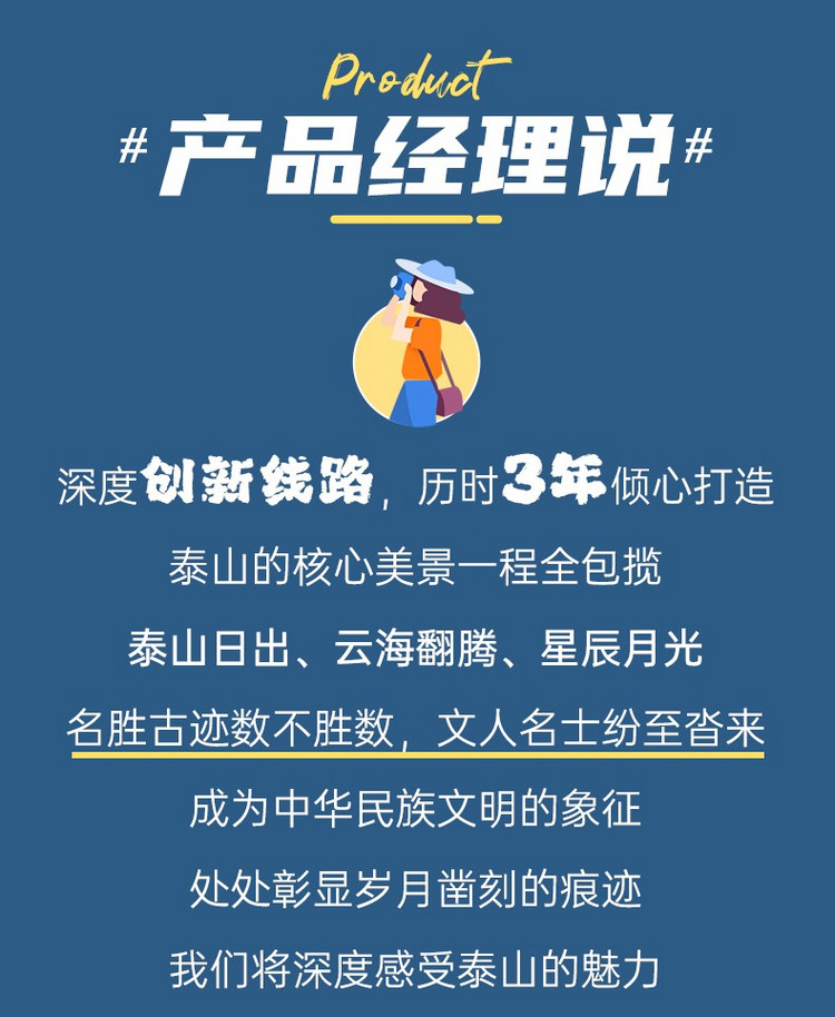 3、门票:请在“泰山景区”微信公众号完成线上实名制要预定出行日当天门票,泰山景区提前7天放票,报名后请尽快预约泰山门票!(泰山门票个人实名制预定,无法订购团队票,如有变化,门票可全额退款)