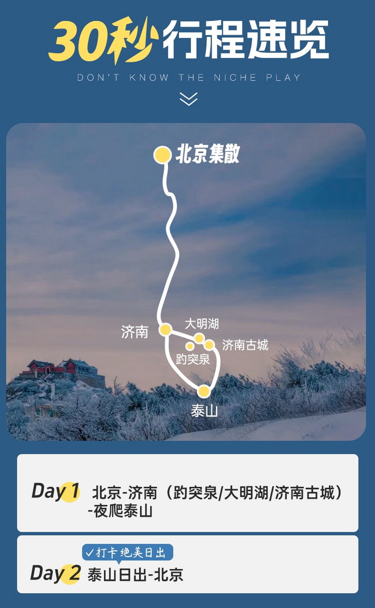 07:30地铁5号线刘家窑D出口集合准时出发前往济南(车程约5小时)。