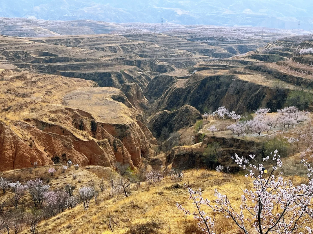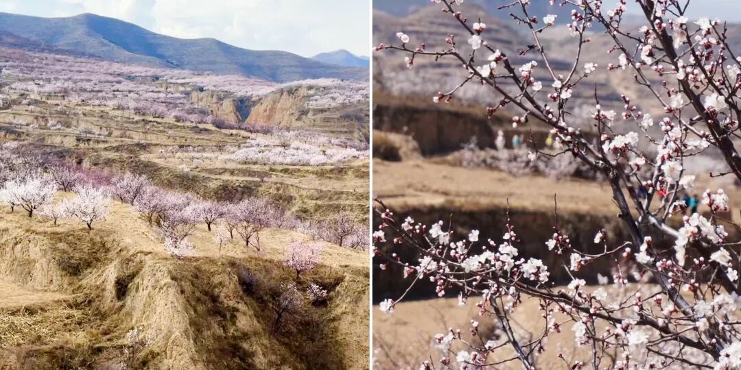 这片黄土面积占到近70%的黄土地历经千年沧桑,在雨水冲刷侵蚀下,造就了今天这种沟壑纵横、雄奇、苍凉而贫瘠的独特风景线,每逢四月,万亩杏花林竞相开放,犹为壮观。