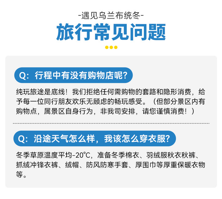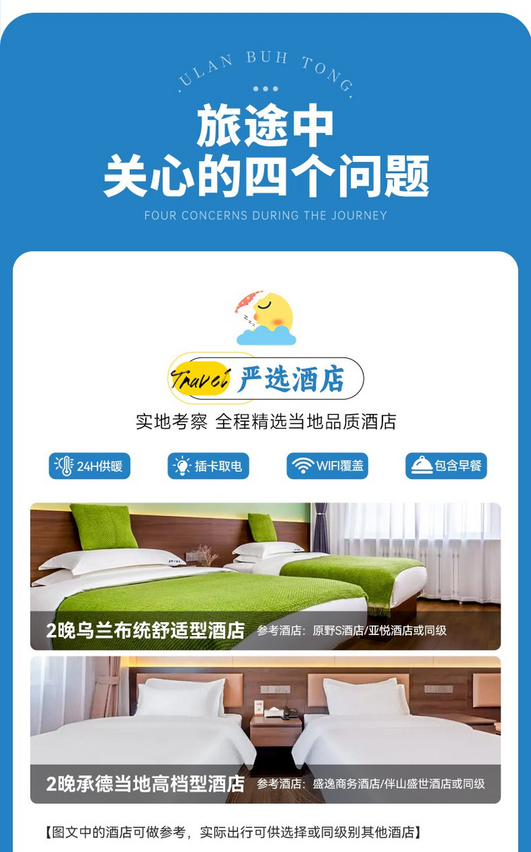3、门票:乌兰布统和塞罕坝冬季不收费,如需收费请自理