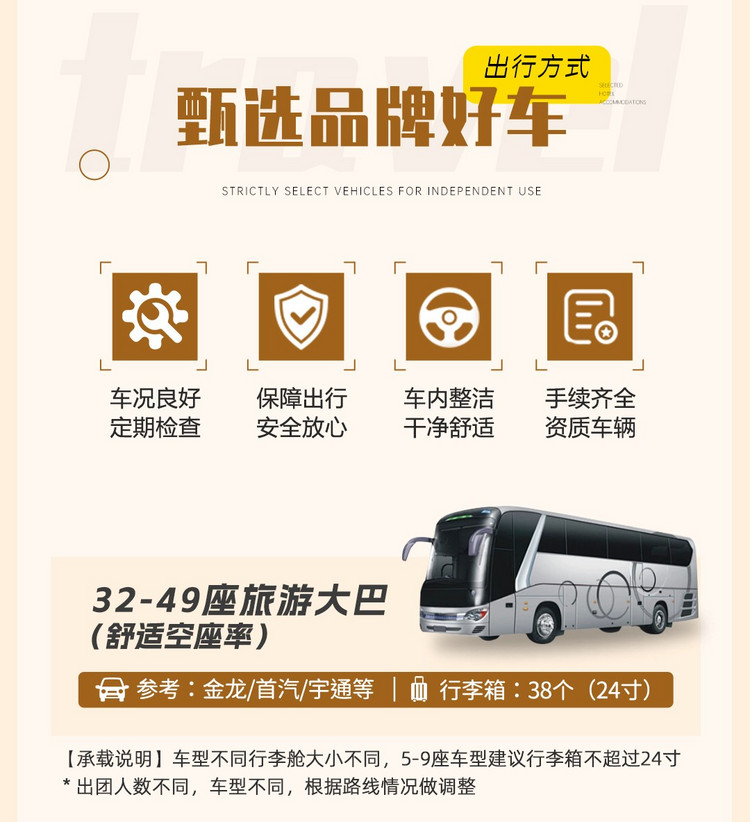 2)活动出发前会统一给大家发集合信息(微信或短信),包括领队电话、集合时间地点、车牌号等活动信息,队员请以集合信息为准准时集合;车上座位顺序为集合时先到自由选择,全程原车原位;迟到视为自动放弃后续行程,请恕费用不退。