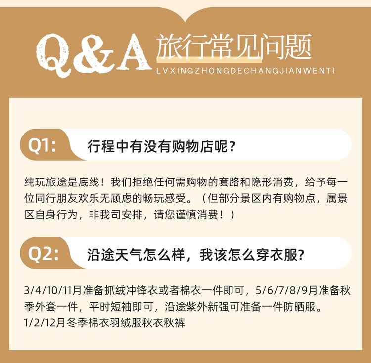 3、其他:本活动属于半自助游户外活动,不含景区讲解,途中的个人可选消费请自理。