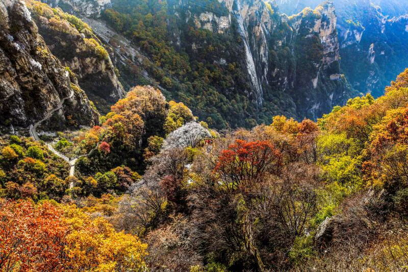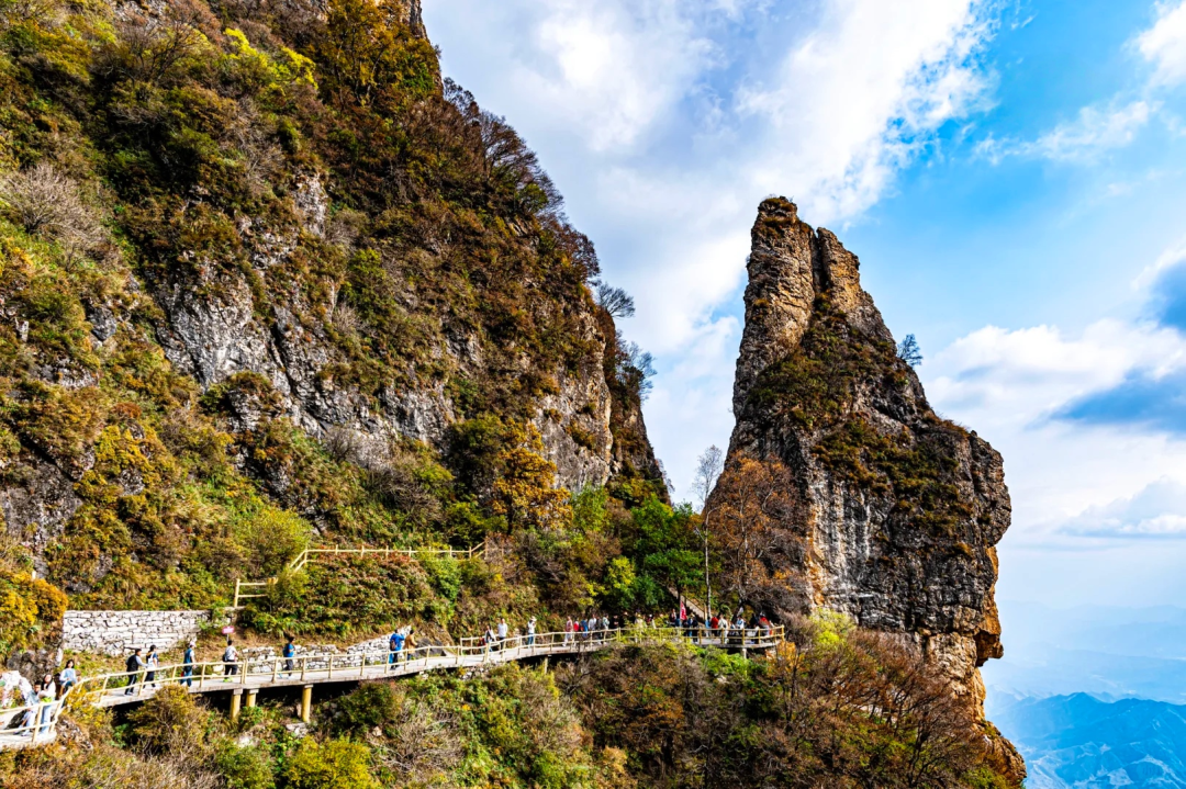 景区总面积54平方公里,主山脊线长7000余米,有三顶、六台、九谷、八十一峰。崖耸云天、峰石彩林、佛光云海集于一身。由于特殊的地质结构和优美的自然风景,2017年2月被国家旅游局批准为“国家AAAAA级景区”。