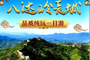 10:00 游览世界八大奇迹 之一的【八达岭长城】(约2.5小时),体会“不到长城非好汉的”的豪迈。万里长城象一条巨龙盘踞在祖国的北面,绵延数万里,纵 贯两千年,雄伟壮观,气势磅礴。八达岭长城,更是“奇迹”中的经典,登上长城,脚下的崇山峻岭,蜿蜒起伏,四季风光各不相 同:春天野花竞开,夏季绿色满眼,秋天层林尽染,冬来雪域莽莽,景色令人叹为观止。(游览时间约2.5小时,交通辅助工具八达岭缆车或滑车往返140元/人,自愿乘坐!)