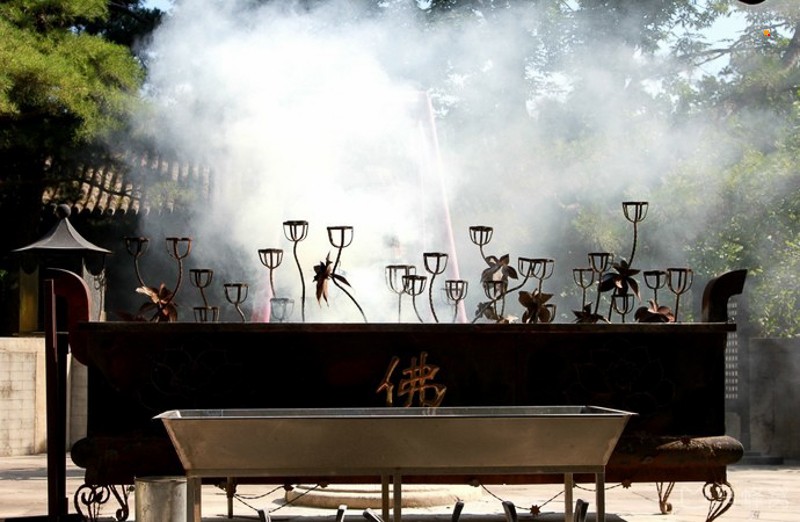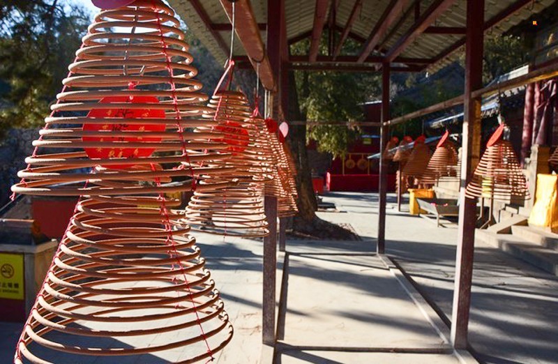 主要建筑可分为中、东、西三路。上香拜佛可从中路行至观音殿再从楞严坦一路下山。虽说是山路但路面都很平缓,不用担心体力不足。拜佛不需在寺外请香,各大殿外都有免费香提供,自取三支燃香引愿自行礼佛即可。