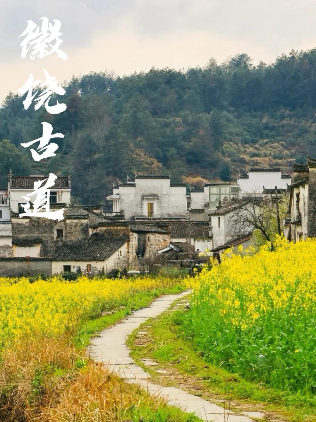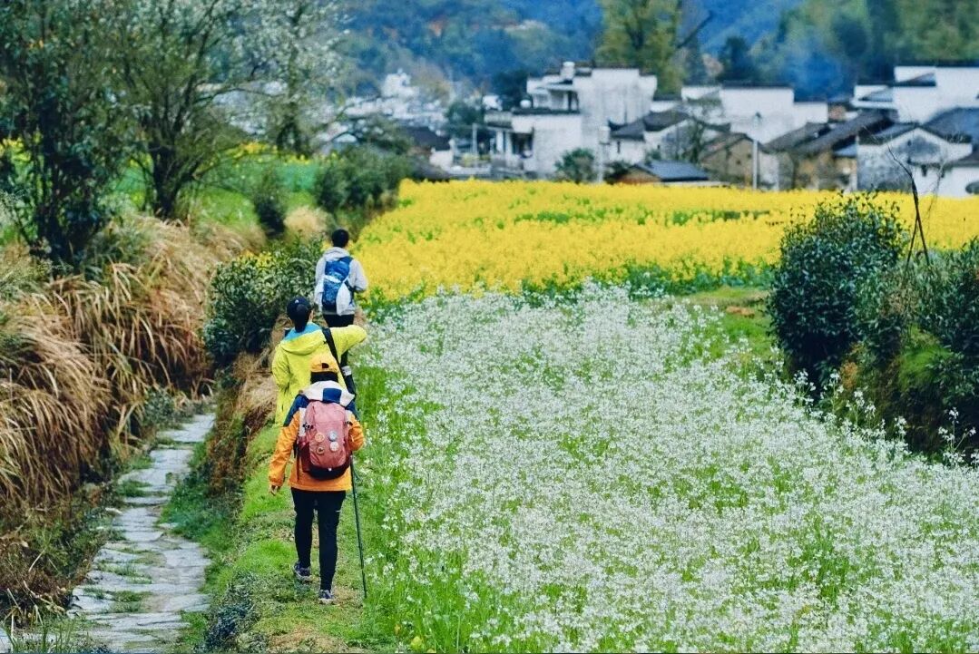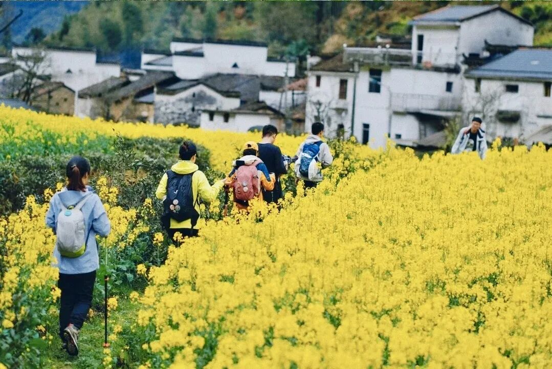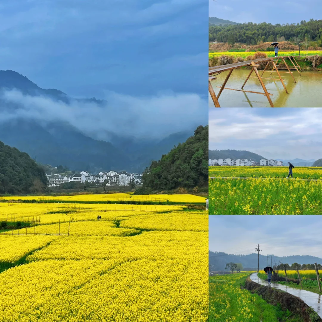 黄灿灿的油菜花与远山、近水、粉墙、黛瓦相映成趣