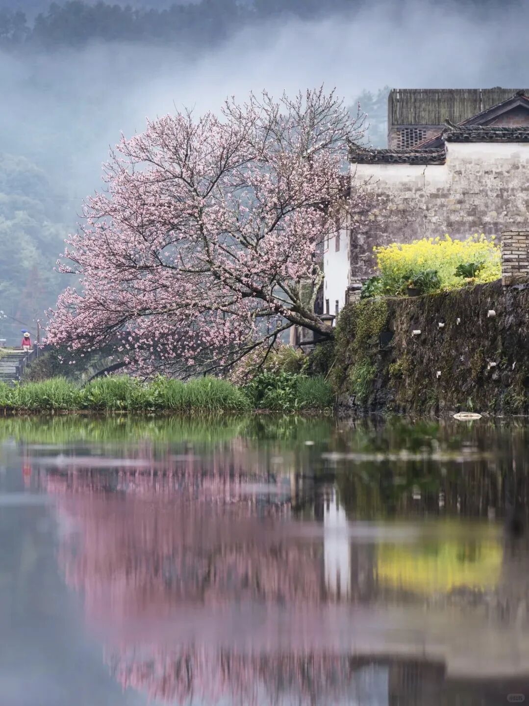 庆源村油菜花、梨花和桃花同时盛开,把庆源人家笼罩在一派“金山、银海、胭脂云”的景象之中。