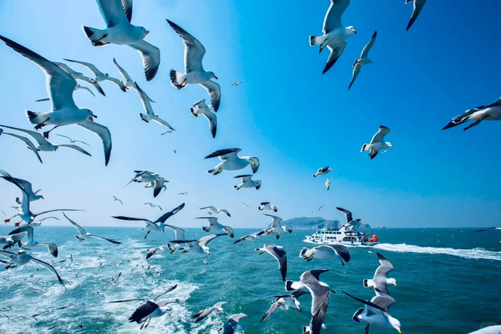 下午|集合前往长岛旅游码头乘游船海上游览、观光人间仙境、海上仙山的长岛风光,远观沙门水寨—庙岛;沿途观赏长岛十大胜景之一的—宝塔礁;原生态海岛——猴矶岛,远观英国人设立的百年灯塔,观万鸟云集的壮观场面(客人可用自带的火腿肠喂海鸟,亲近大自然)(全程约2.5小时),沿途风景优美,成群的鸥鸟在此聚居嬉戏,岛上处处可见栖息的海鸥,在海鸥繁殖的山崖峭壁间,均可见海鸥筑巢,体验人与鸟类和平共处的关系。