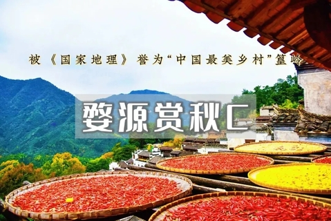 【篁岭晒秋】 挂在山崖上的篁岭古村,“地无三尺平”,数百栋徽派民居在百米落差的坡面错落排布,每当日出山头,晨曦映照,整个山间房屋晒架上五彩缤纷的丰收果实,绘就出美丽的“晒秋”农俗景观。春晒茶叶、夏晒山蕨、秋晒果蔬、冬晒乡俗……一年四季延绵有续。 “晒秋”是篁岭古村500年来延续至今的晒谷物特色民俗景象。它反映了以篁岭为代表的山居民众原生态的晒物农俗,是劳动人民对丰收喜庆和未来生活所赋予的质朴美好的期待,并逐渐沉积为一种民俗和文化。