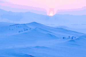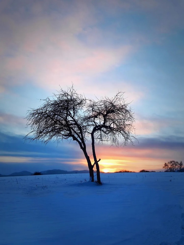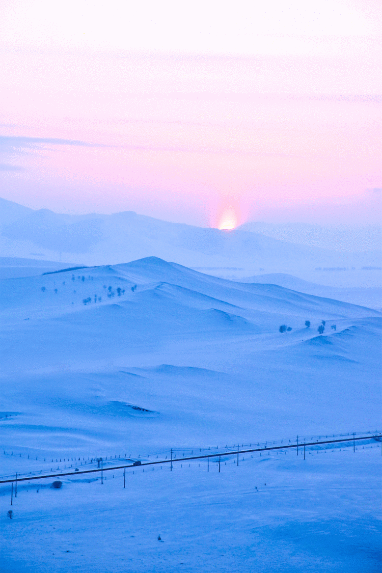 邂逅乌兰布统的「雪国风光」,从小河头村的日出开始。