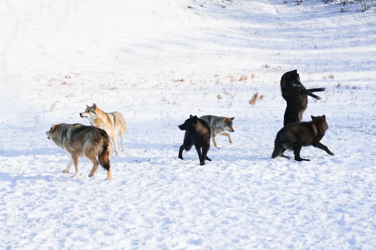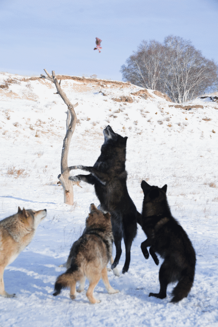 狼园参观野狼高空捕食、群狼夺肉、训狼表演等,