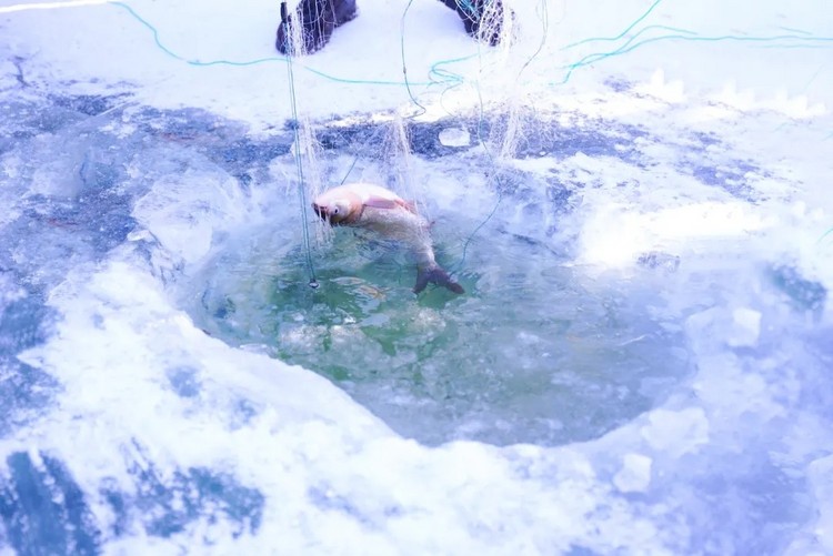 在鱼出冰面时,享受成功的狂欢。