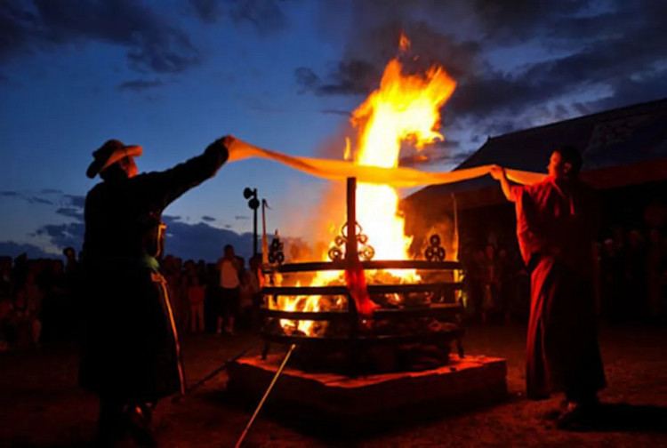 祭火大典是蒙古部落的传统仪式,大典上,蒙古四胡宣唱蒙语祭词,蒙古姑娘雪地端庄起舞,耳边传来悠扬的马头琴声……与长生天对话,敬畏自然!
