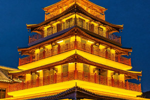 适时乘船返回码头后,我们前往『太行水镇』,大家自由结伴游览品小吃、逛夜景。