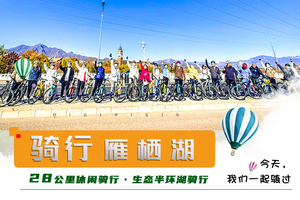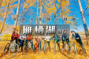 10:30|到达雁栖湖自行车基地,领取自行车,检查车辆及护具,统一讲解注意事项。之后在领队的带领下按指定路线骑行,我们边骑边玩,感受秋日雁栖湖风景。