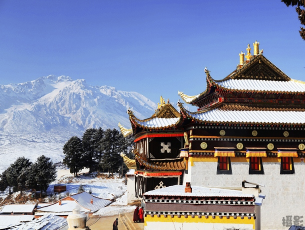 游玩结束后前往【格尔底寺】(行程约:95KM,车程约2小时,游玩约2小时)。寺庙红墙顶积着雪,殿内烧着暖炉很舒服,信徒裹着厚外套转经筒,经幡上沾了薄雪没那么张扬,肉身殿前很安静,院外松枝挂着冰棱,阳光照在上面亮闪闪的。