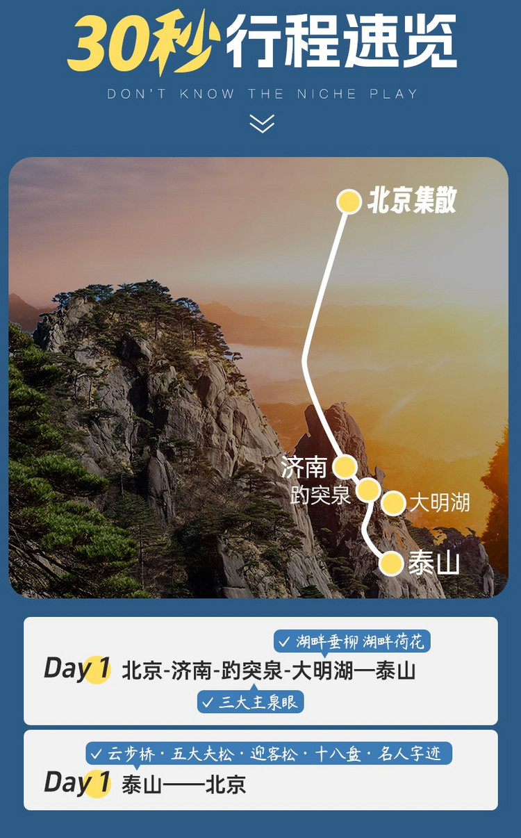 07:30地铁5号线刘家窑D出口集合准时出发前往济南(车程约5小时)。